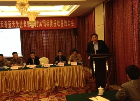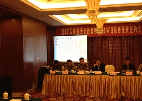 總經(jīng)理錢立華宣讀了2014年天奇藍天任職通知,并與各部門簽定了2014年的目標責任狀。